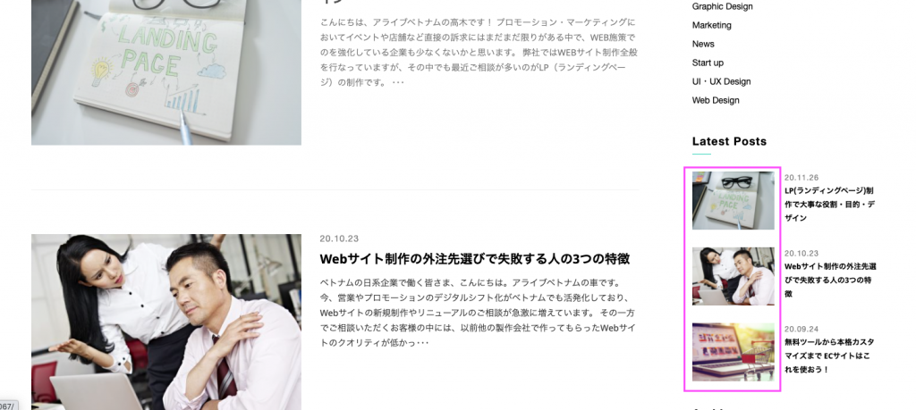 Thông thường thì hình thumbnail sẽ hiện như trên. Hình eyecatch tự động thu nhỏ lại hiện thành thumbnail.